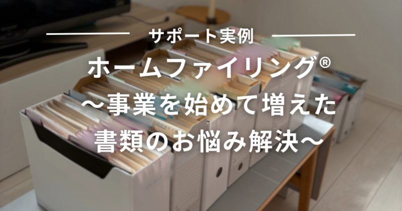 事業を始めて書類が増え、「必要なときにすぐ見つからない」「今のうちに、きちんと管理できる仕組みをつくりたい」そんなお悩みからご依頼いただいた、ホームファイリングサポートの実例をご紹介します。 ご相談内容:書類が必要なときに見つからない 事... -