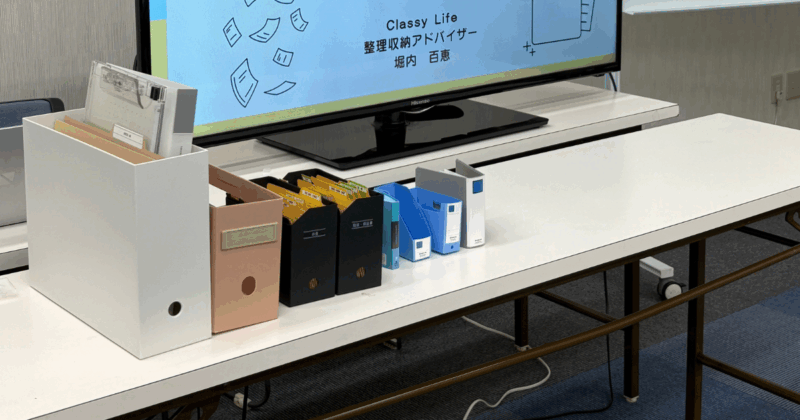 所属チーム @classylife_salon の鈴木久美子さんとの共同開催。「プリントやおたより、書類が山になってしまう」「書類の管理方法がわからない」といったお悩みに向けて、書類整理の基本と仕組みづくりのポイントを、ワークを交えてお伝えしました